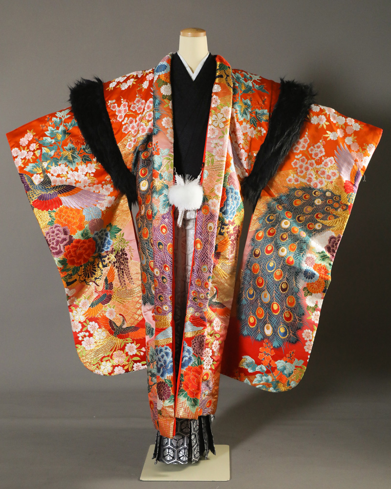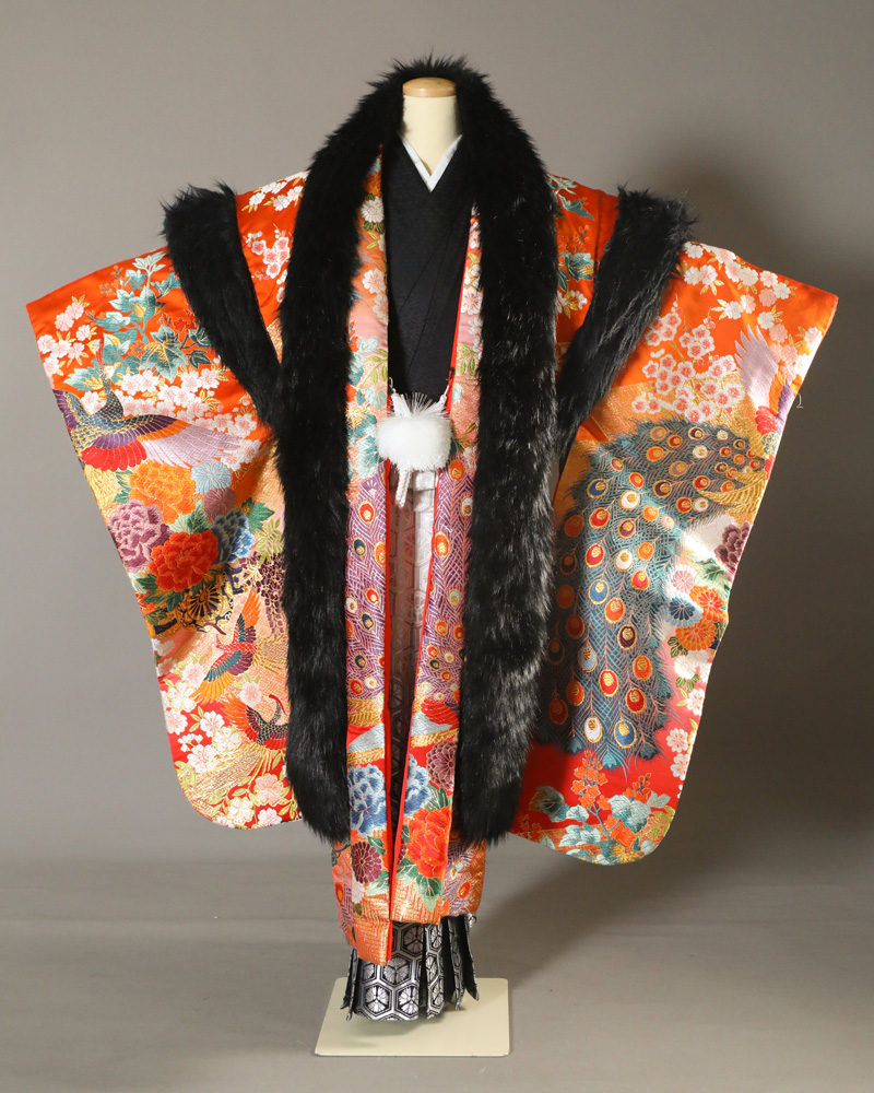 | セット内容 | バサラ羽織、着物、袴、長襦袢(半襦袢)、羽織紐、角帯、扇子、雪駄、足袋、腰紐2本、ロングファー |