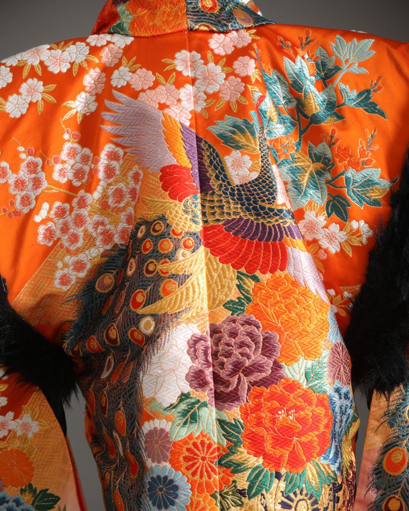 男性袴レンタル 00108 BASARA 橙地×孔雀柄 165cm〜180cm