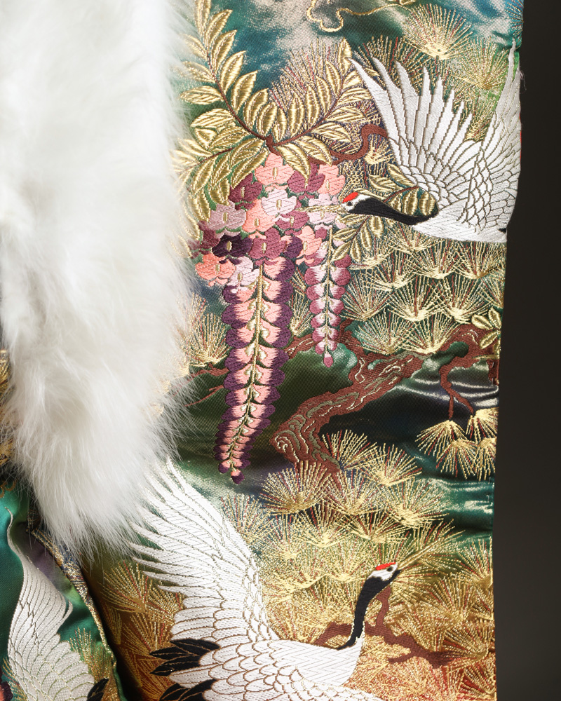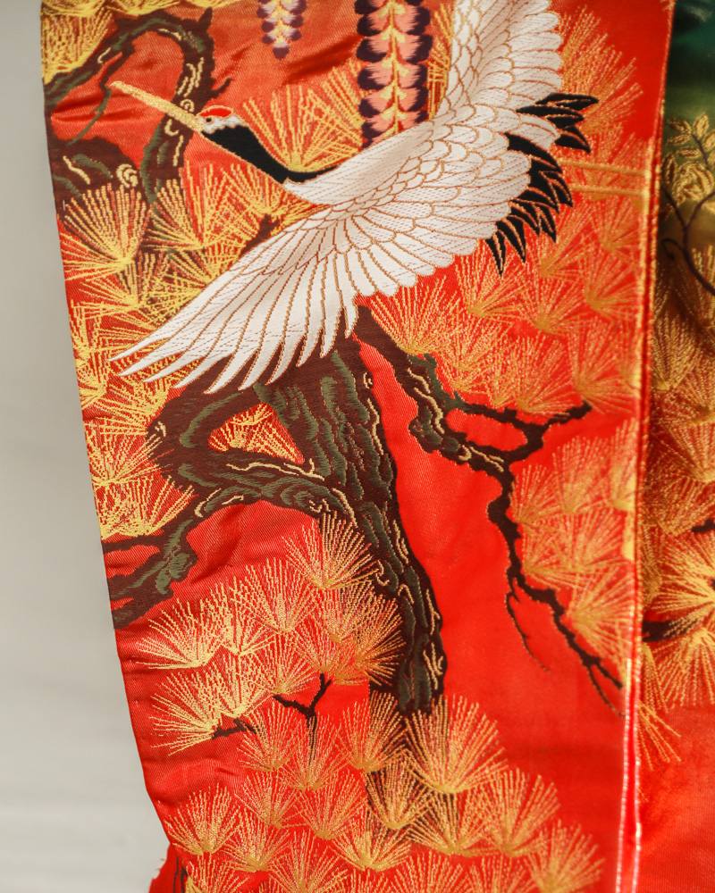 男性袴レンタル 00116 BASARA 緑×赤 鶴柄 165cm〜180cm