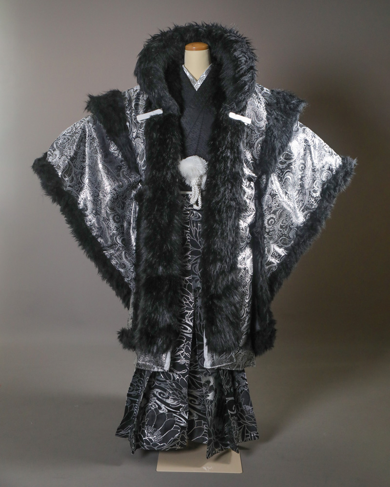 男性袴レンタル 00119 BASARA 銀地×黒ペーズリー柄 165cm〜180cm