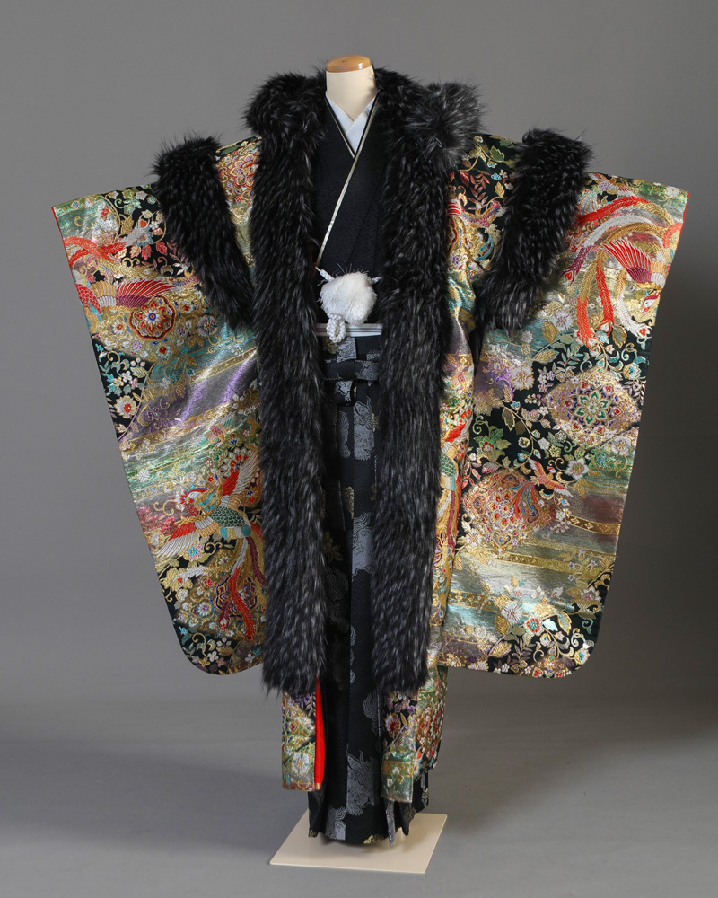 男性袴レンタル 00120 BASARA 金×黒 鳳凰 165cm〜180cm